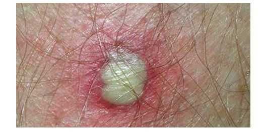 در مرکز آن معمولاً چرک سفید یا زرد دیده میشود